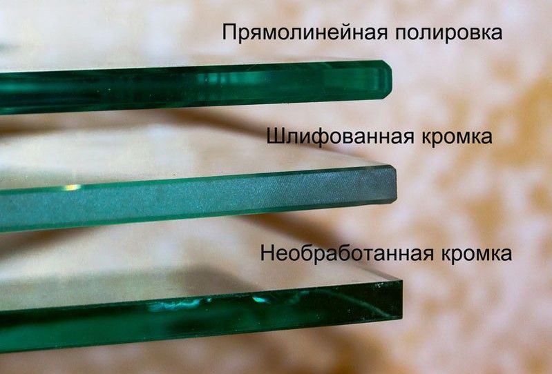 Полировка - делается в случае, когда кромка стекла у конечного изделия видна и должна выглядеть эстетично. Такая кромка выглядит глянцевой и прозрачной, как и сама поверхность стекла. Полировка стекла производится у цельностеклянных дверей, полок, столешниц, душевых и офисных перегородок и т.д.